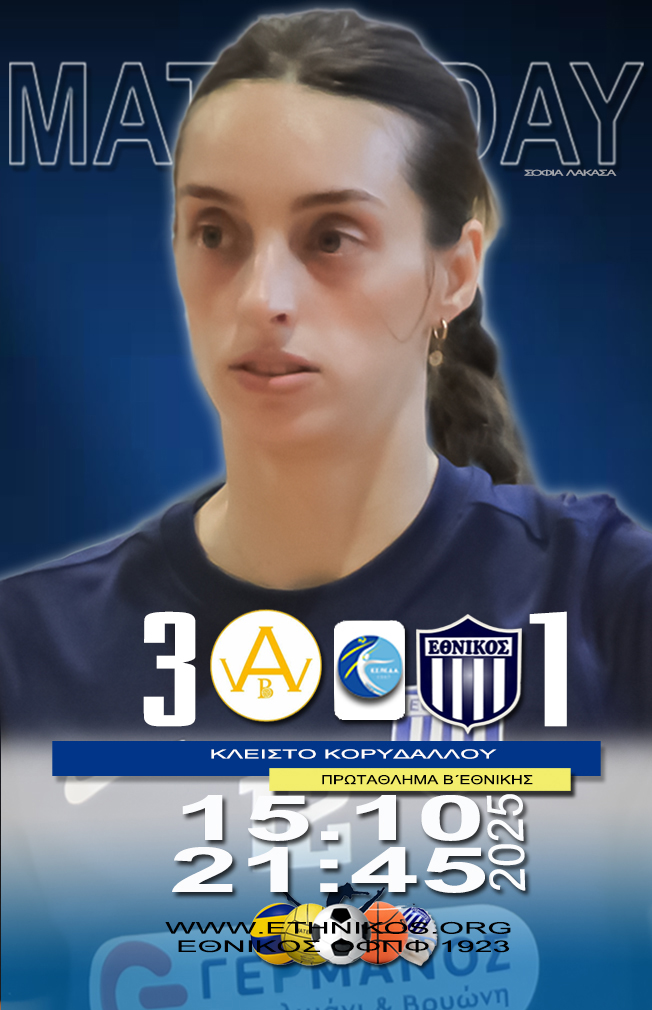 Για την 3η αγωνιστική του πρωταθλήματος, ο Εθνικός θα υποδεχθεί την Τετάρτη 22.10.2025, στις 21:45 στο κλειστό των Καμινίων, τον Άγιο Ελευθέριο.